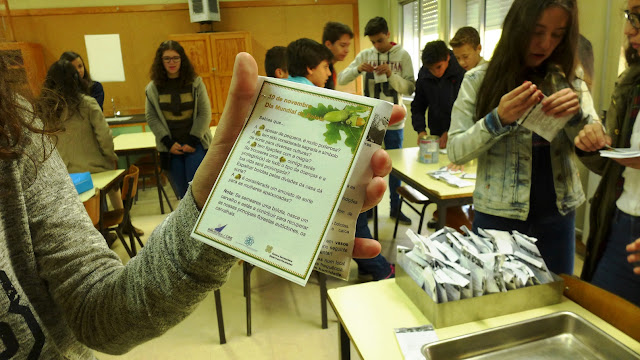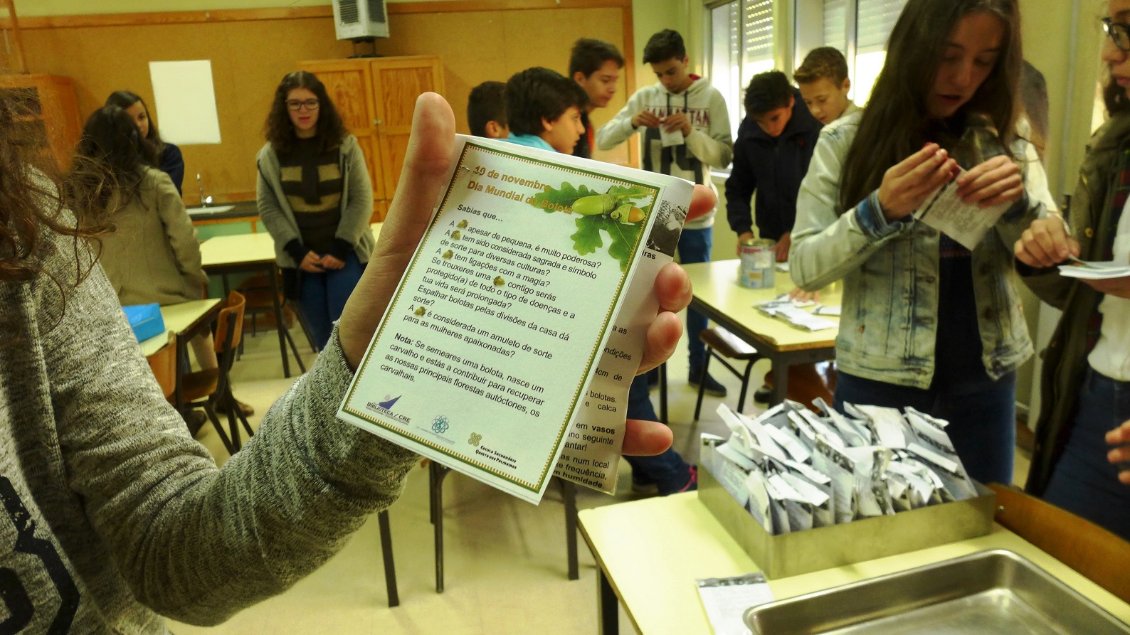 das bolotas), distribuímos pacotinhos com bolotas pela escola.